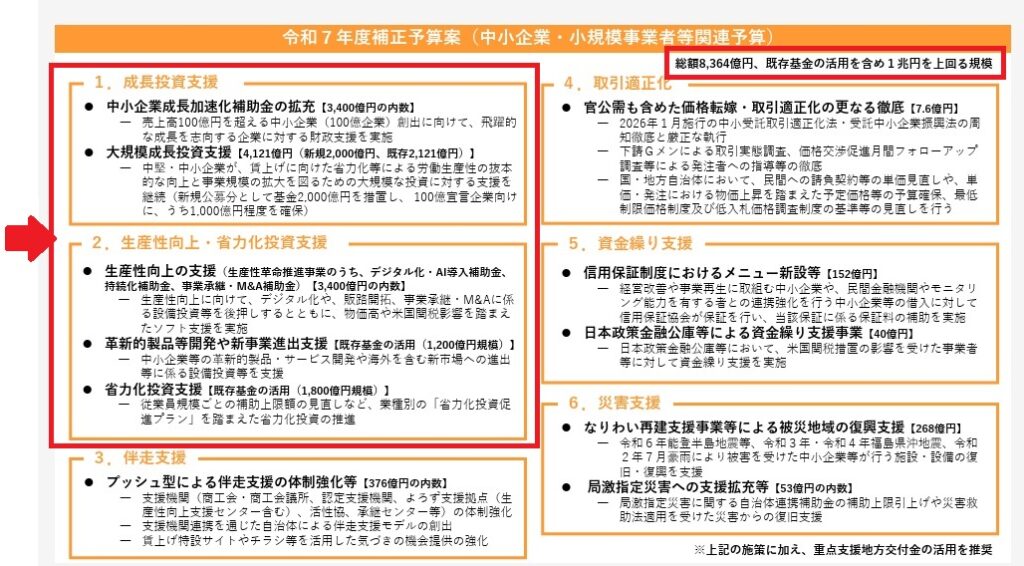 令和7年度補正予算 中小企業向け支援予算の全体像