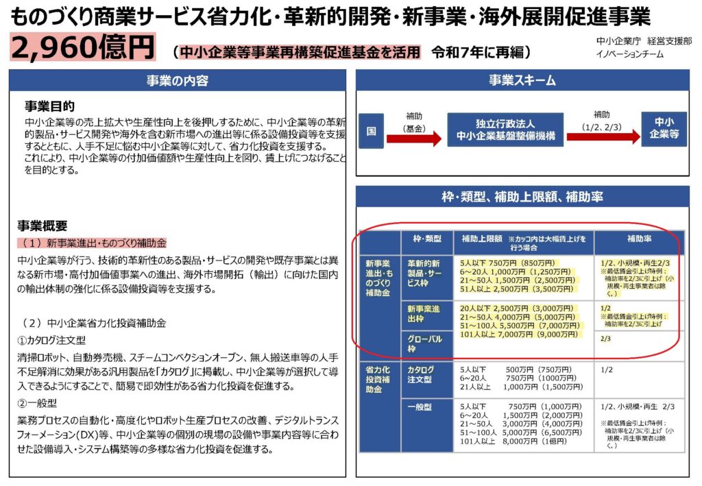 「新事業進出・ものづくり補助金」概要
